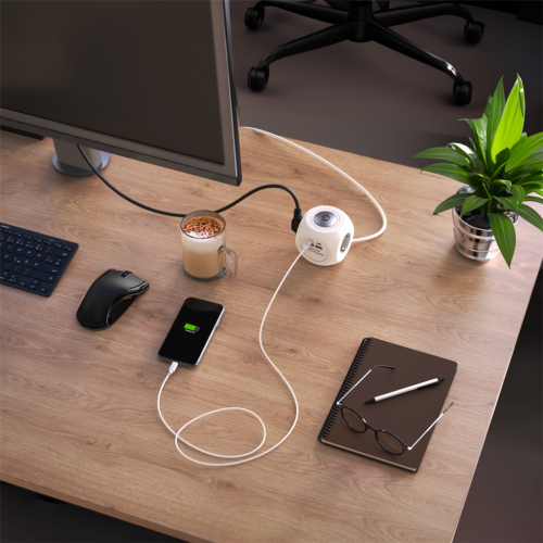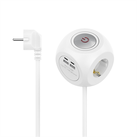 • 3zásuvkový prodlužovací přívod se čtyřmi USB zásuvkami a vypínačem