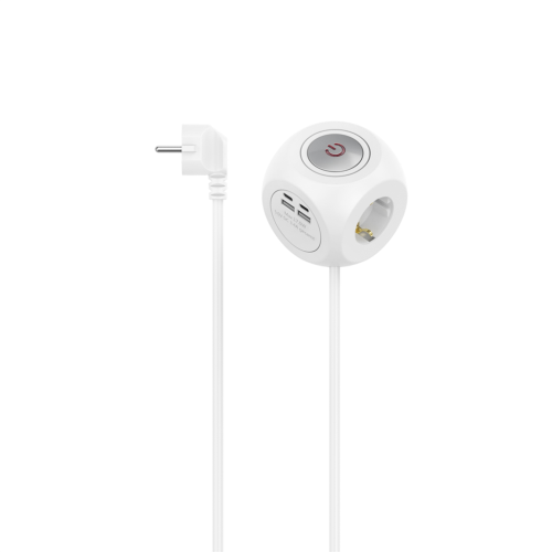 - 3zásuvkový prodlužovací přívod se čtyřmi USB zásuvkami a vypínačem - kompaktní provedení ve tvaru kostky se zaoblenými rohy vypadá na stole elegantně a zabere málo místa - německý standard zásuvek …