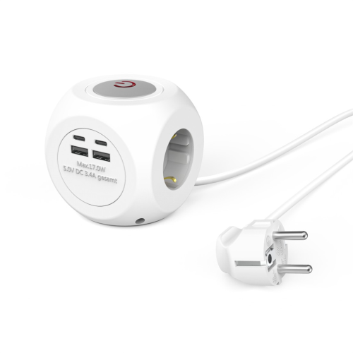 Hama prodlužovací přívod kostka, 3x zásuvka schuko, 2x USB-C, 2x USB-A, 1,4 m