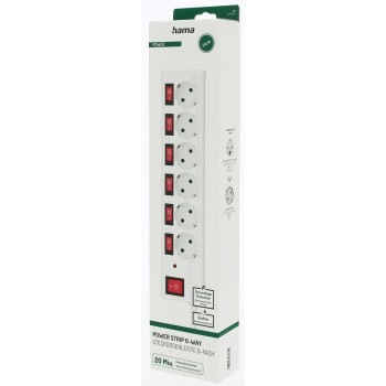 6zásuvkový prodlužovací přívod se samostatným vypínačem každé zásuvky