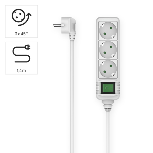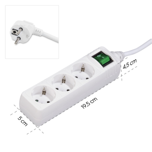 - prodlužovací přívod se třemi zásuvkami a vypínačem - německý standard zásuvek schuko (zemnící kontakty na okraji), vhodné pro běžně používané unischuko vidlice (nevhodné pro starší kulaté vidlice bez …