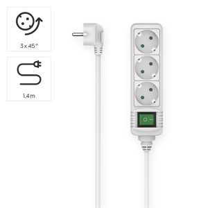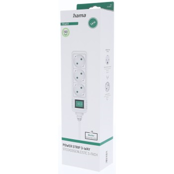 Hama prodlužovací přívod s vypínačem, 3x zásuvka schuko, 1,4 m, bílý