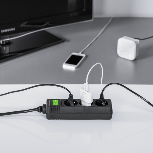 - prodlužovací přívod se třemi zásuvkami a vypínačem - německý standard zásuvek schuko (zemnící kontakty na okraji), vhodné pro běžně používané unischuko vidlice (nevhodné pro starší kulaté vidlice bez …