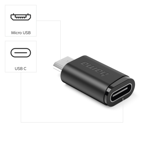 - pro připojení USB-C příslušenství (např. nabíječka/kabel) k telefonu, tabletu nebo jinému zařízení s micro USB zásuvkou - dvojité stínění pro spolehlivý přenos signálu - extra kompaktní provedení - …