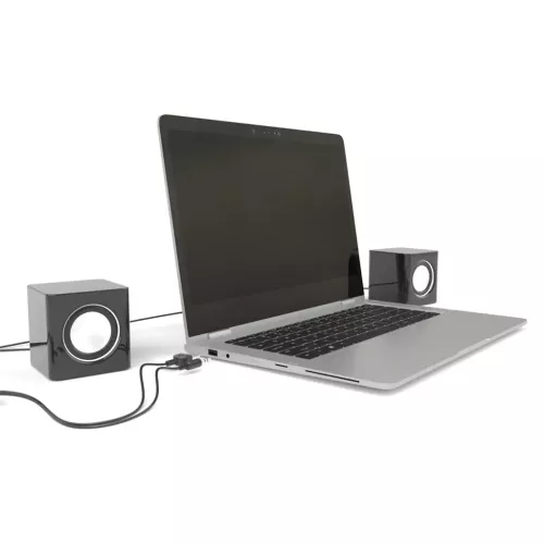 - aktivní 2.0 reproduktory k notebooku nebo PC - možnost nastavení hlasitosti - napájení pomocí USB připojení Technické parametry: - připojení: 3,5 mm jack - audiosystém: 2.0 - napájení: USB 3.0 A vidlice …