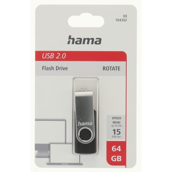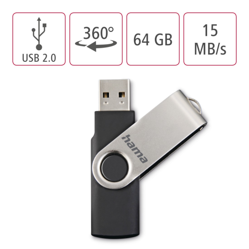 Hama rotate FlashPen, USB 2.0, 64 GB, 6 MB/s, black/silver