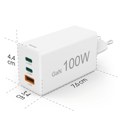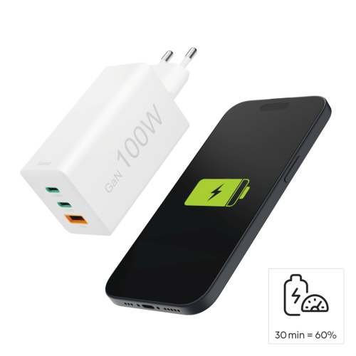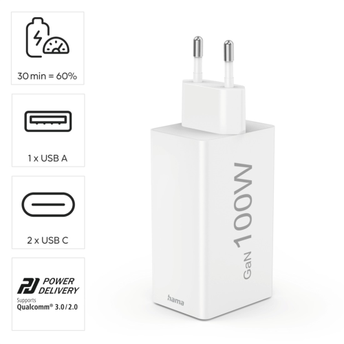 Hama rychlá USB nabíječka GaN 2x USB-C + USB-A, PD/QC, 100 W