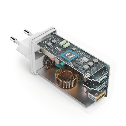 • nejnovější technologie součástek využívající materiál nitrid galia (GaN) místo křemíku