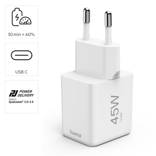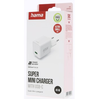 Hama rychlá USB nabíječka, USB-C PD/QC 45 W, super-mini