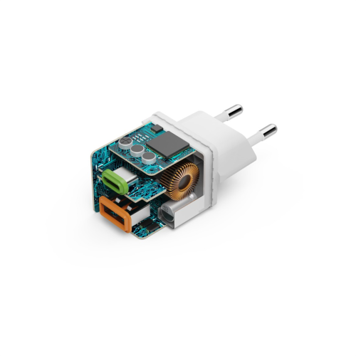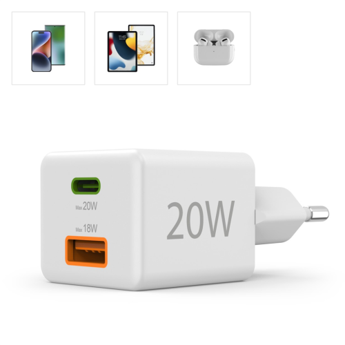 univerzální USB nabíječka pro až 2 zařízení umožňující nabíjení/napájení přes USB konektor malá a lehká nabíječka, neblokuje zásuvky, ideální na cesty technologie USB Power Delivery a Qualcomm Quick …