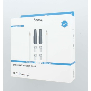 obsah balení: koaxiální kabel (20 m, bílý), 4x F-konektor, 2x ochranný návlek na konektor