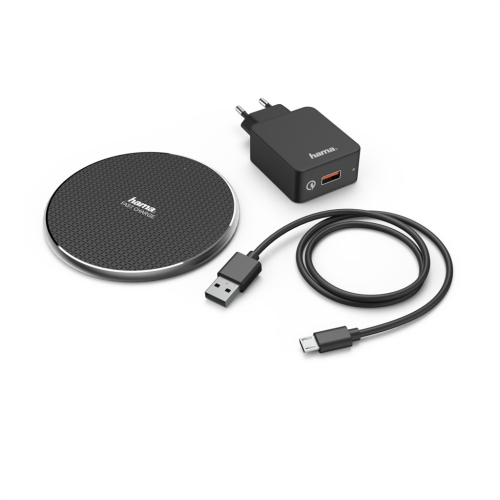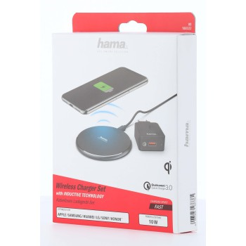 Hama set bezdrátová nabíječka FC10, Qi 10 W + rychlá síťová nabíječka QC 3.0
