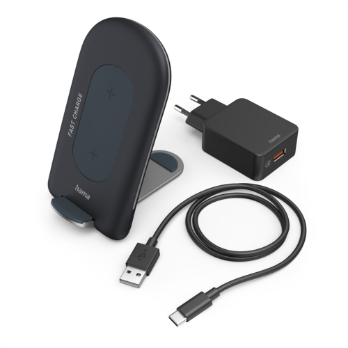 Hama set bezdrátová nabíječka/stojánek Qi FC15S, 15 W + rychlá síťová nabíječka QC 3.0