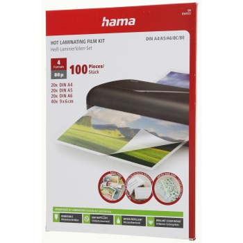 Hama set laminovacích fólií, 80 µ, DIN A4, A5, A6 a vizitky, 100 ks (cena za set)