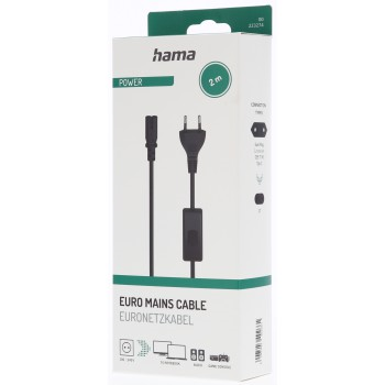 Hama síťový napájecí kabel s vypínačem, euro vidlice, 2 m