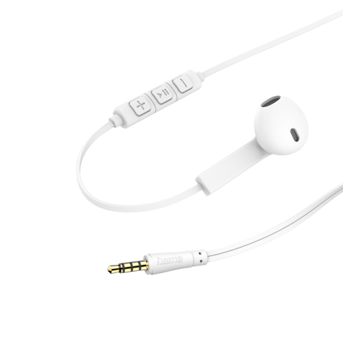 Hama sluchátka s mikrofonem Advance, pecky, plochý kabel, bílá