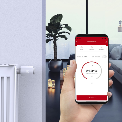 • termostatická regulační hlavice pro radiátor s nastavitelnými vytápěcími programy pro časovou regulaci teploty v místnosti s možností vzdáleného ovládání mobilní aplikací (přes centrální jednotku)
