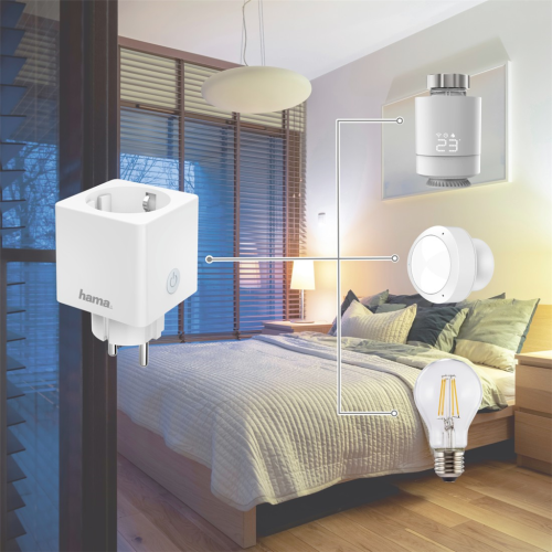 zásuvku je možno začlenit do vaší domácí WiFi sítě pomocí bezplatné aplikace Hama Smart Home, a následně ji ovládat odkudkoliv pomocí mobilního telefonu nebo tabletu