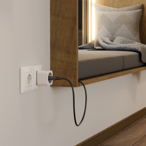 • kompaktní tvar šetří místo, nezakrývá vedlejší zásuvky nebo vypínače