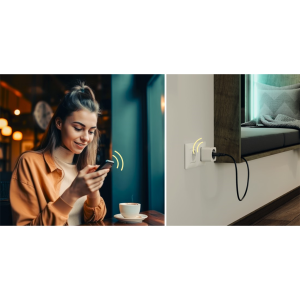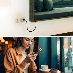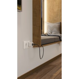 • kompaktní tvar šetří místo, nezakrývá vedlejší zásuvky nebo vypínače