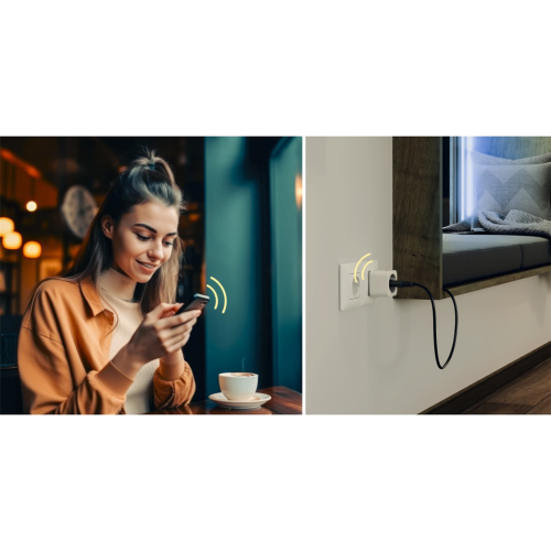 • It doesn’t Matter: podpora nového standardu Matter umožňuje zásuvku začlenit do vaší chytré domácnosti pomocí jakékoliv aplikace kompatibilní s Matter (např. Alexa, Apple Home, Google Home) a následně ji ovládat odkudkoliv pomocí mobilního telefonu nebo tabletu