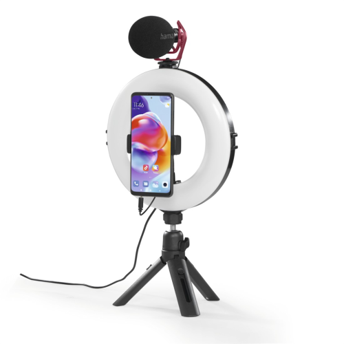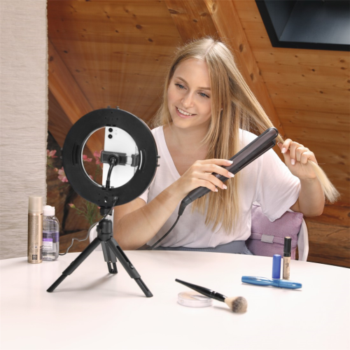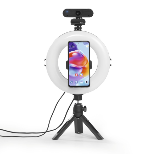 Hama SpotLight Smart 80 II, kruhové LED světlo 8", držák mobilu, dálková spoušť, stolní stativ