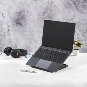 stojan s nastavitelným úhlem náklonu a možností otáčení pro pohodlné používání notebooku