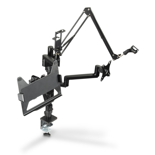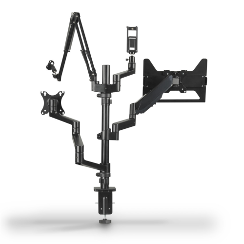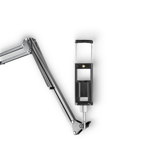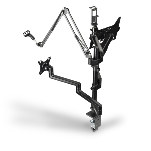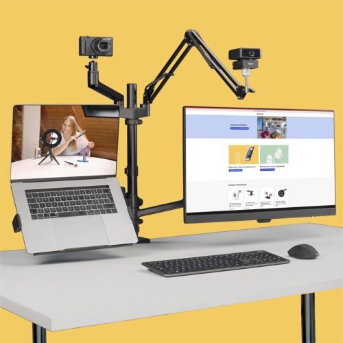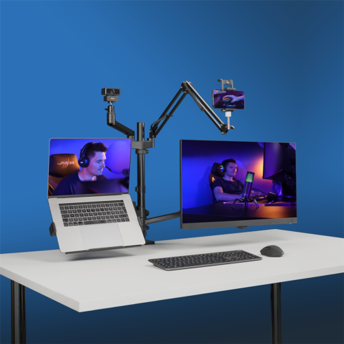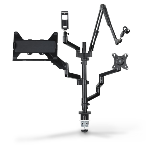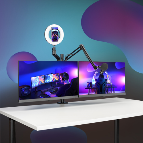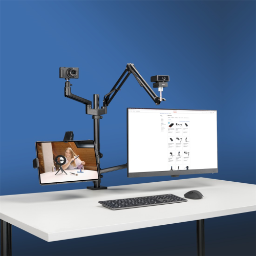 4 ramena pro monitor nebo notebook, tablet nebo mobil, mikrofon, webkameru, kruhové LED světlo nebo fotoaparát