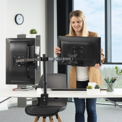 Držák dvou monitorů do úhlopříčky 32", upevnění ke stolu, 2 ramena, VESA max 100x100, včetně nářadí pro montáž
