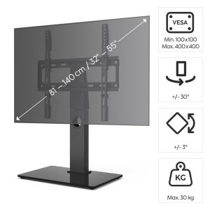 polohovatelný televizní držák se skleněným podstavcem na stůl nebo jinou plochu vhodné pro televizory s úhlopříčkou cca 81 až 140 cm (32" až 55") ideální jako náhrada originálního stojánku televizoru …