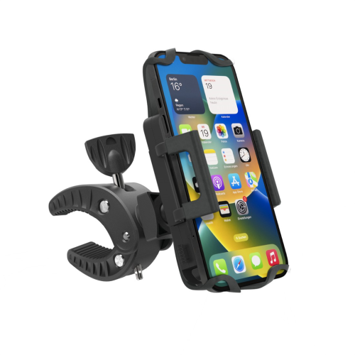 držák pro bezpečné připevnění telefonu na řídítka jízdního nebo elektrického kola individuální nastavení pro konkrétní zařízení díky pohyblivým čelistem možnost otočení o 360° díky kulovému kloubu možnost …