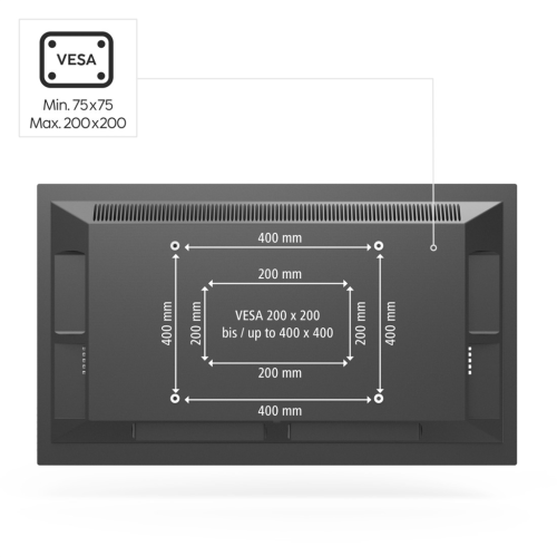 • podpora VESA (rozteč závitů): 75x75, 100x100, 200x100, 200x200