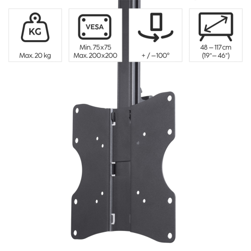 - stropní držák pro upevnění ploché obrazovky, díky kloubu vhodný i pro šikmé stropy (např. do podkroví) - utahovací kloub pro zajištění ve svislé poloze nebo mírném sklonu - bezpečný jisticí mechanismus …