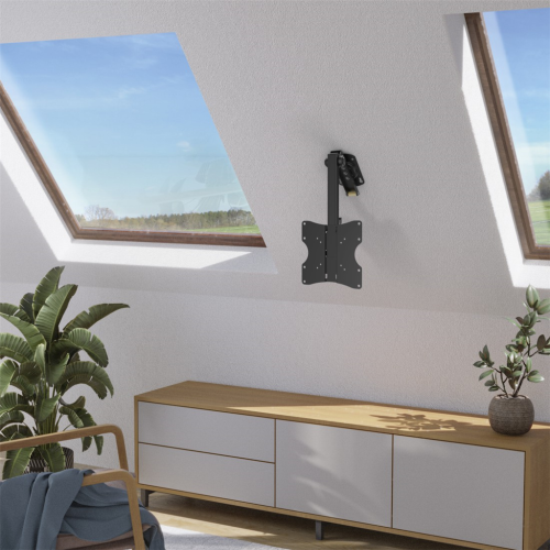 • stropní držák pro upevnění ploché obrazovky, díky kloubu vhodný i pro šikmé stropy (např. do podkroví)