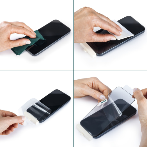 • snadná aplikace ve 3 krocích: vyčistěte displej telefonu, upevněte EcoAdapter aplikační pomůcku do nabíjecího konektoru a následně umístěte na vrch ochranné sklo