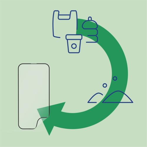 • 100% ochrany displeje a podpůrné fólie je vyrobeno z recyklovaného PET materiálu (rPET) = až o 50% méně spotřebované energie a jen 33% CO2 emisí než při výrobě běžných nových PET produktů