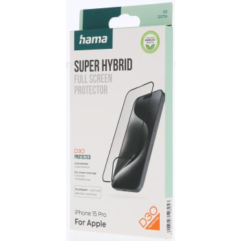 Hama Super Hybrid, nerozbitné ochranné sklo na displej pro Apple iPhone 15 Pro, licence D3O