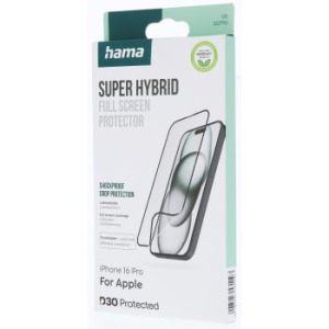 Hama Super Hybrid, nerozbitné ochranné sklo na displej pro Apple iPhone 16 Pro, licence D3O®