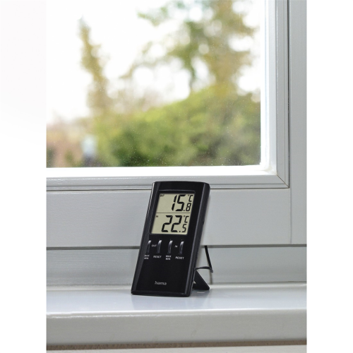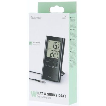 Hama T-350, digitální teploměr, měření vnitřní a venkovní teploty, senzor na kabelu 150 cm, černý