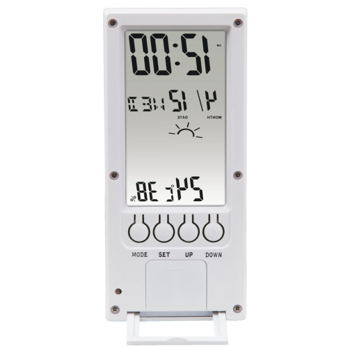 - digitální zobrazení teploty a vlhkosti vzduchu, času a vývoje počasí - počasí zobrazené pomocí symbolů: slunečno, oblačno, déšť - průhledný displej, hodnoty viditelné z obou stran - vysouvací a vyklápěcí …