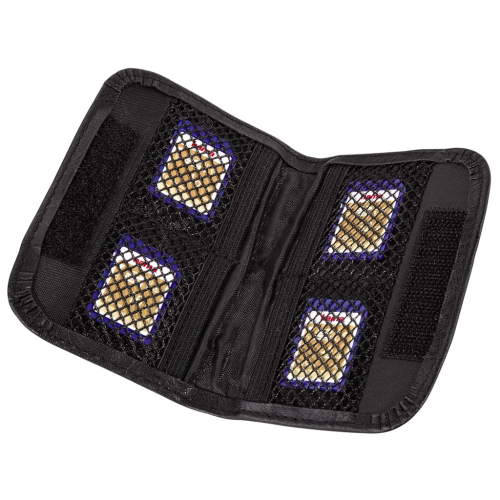 - pouzdro pro všechny typy paměťových karet - zapínaní na suchý zip - kapacita: max. 4 karty - vnější rozměry (Š x H x V): 10,5 x 1 x 7,8 cm - materiál: koskin - barva: černá