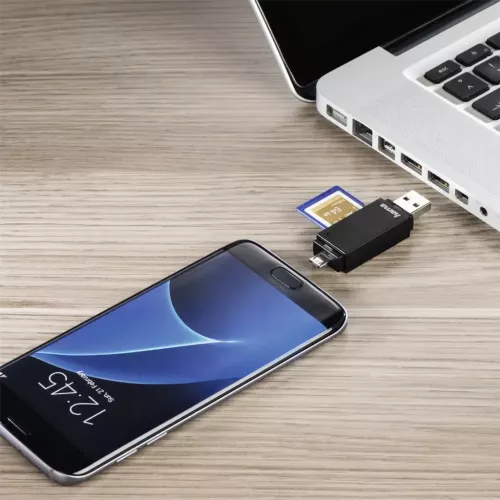 Hama USB 2.0 OTG čtečka karet Basic, SD/microSD, černá