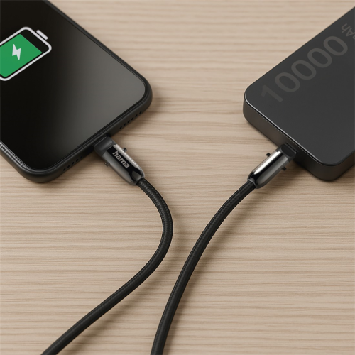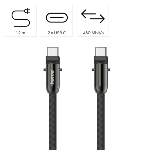 Hama USB-C kabel a šňůrka na mobil 2v1, 1,2 m, černá
