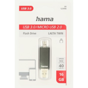 Hama USB flash disk Laeta Twin, USB 3.0, 16 GB, 40 MB/s, USB-A - micro USB