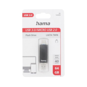 Hama USB flash disk Laeta Twin, USB 3.0, 64 GB, 40 MB/s, USB-A - micro USB