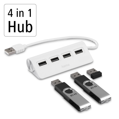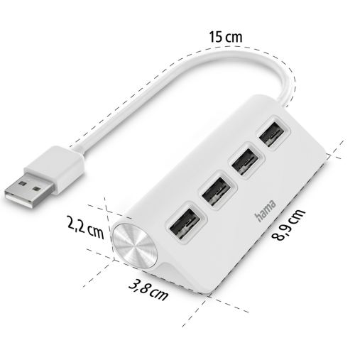 Hama USB hub pro připojení až 4 USB zařízení (např. myš, klávesnice, tiskárna, USB klíč) k jednomu USB portu, High Speed datový přenos až 480 Mbit/s