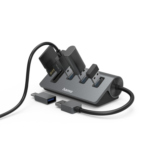 Hama USB hub a čtečka karet, 5 portů, USB-C adaptér