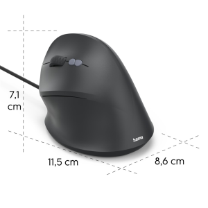 Hama vertikální ergonomická kabelová myš ECM-500L, pro leváky, černá