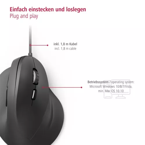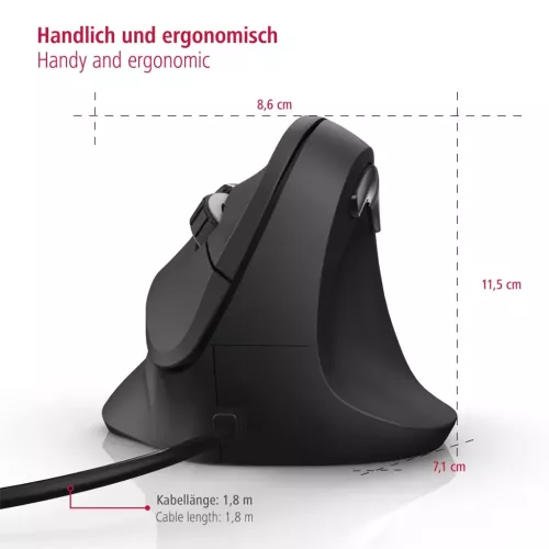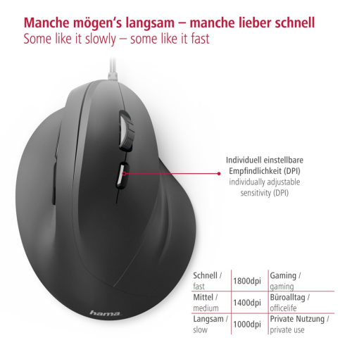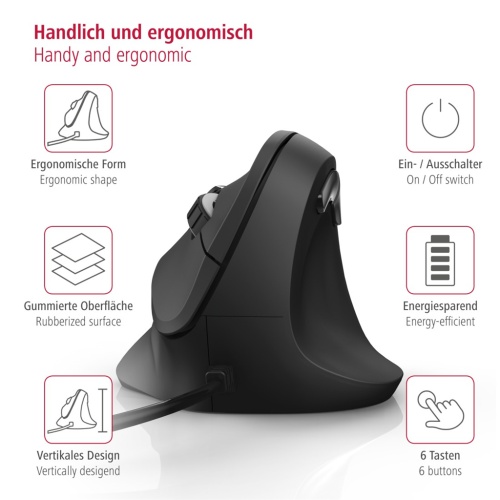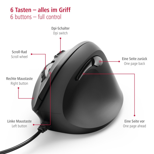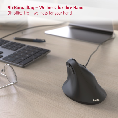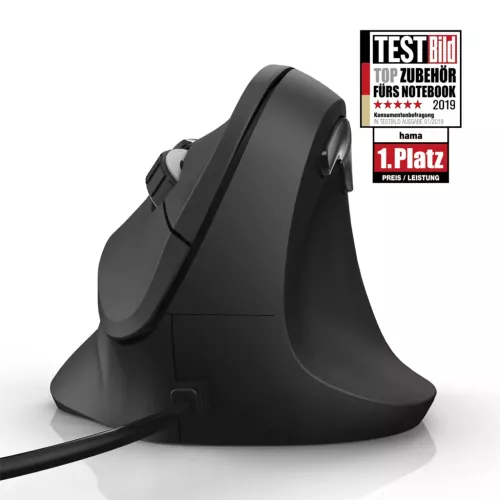 Hama vertikální, ergonomická kabelová myš EMC-500, 6 tlačítek, černá
