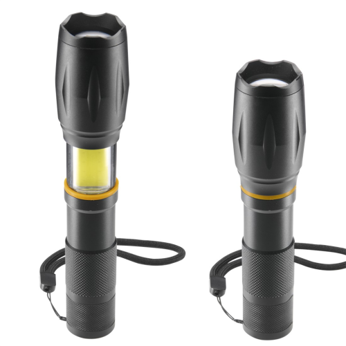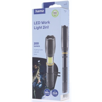 Hama W200, LED svítilna, hliníková, 200 lm / 180 m, 3 režimy, zoom, COB, poutko, baterie